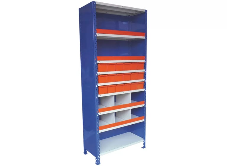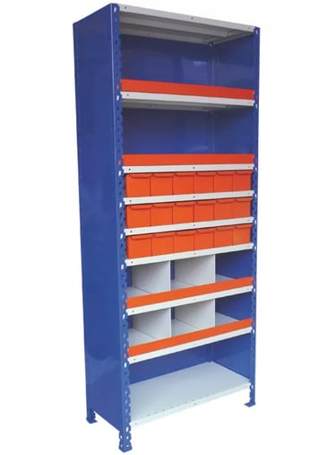 Versáteis e práticas, as estantes com prateleiras de Aço Imsulpar, permitem que os planos de armazenagem variem de acordo com os produtos a serem armazenados, dispensando o uso de parafusos.