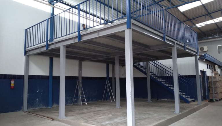 O Mezanino Imsulpar tem montagem rápida e permite o aproveitamento total do pé direito, ampliando a área útil disponível para armazenagem.